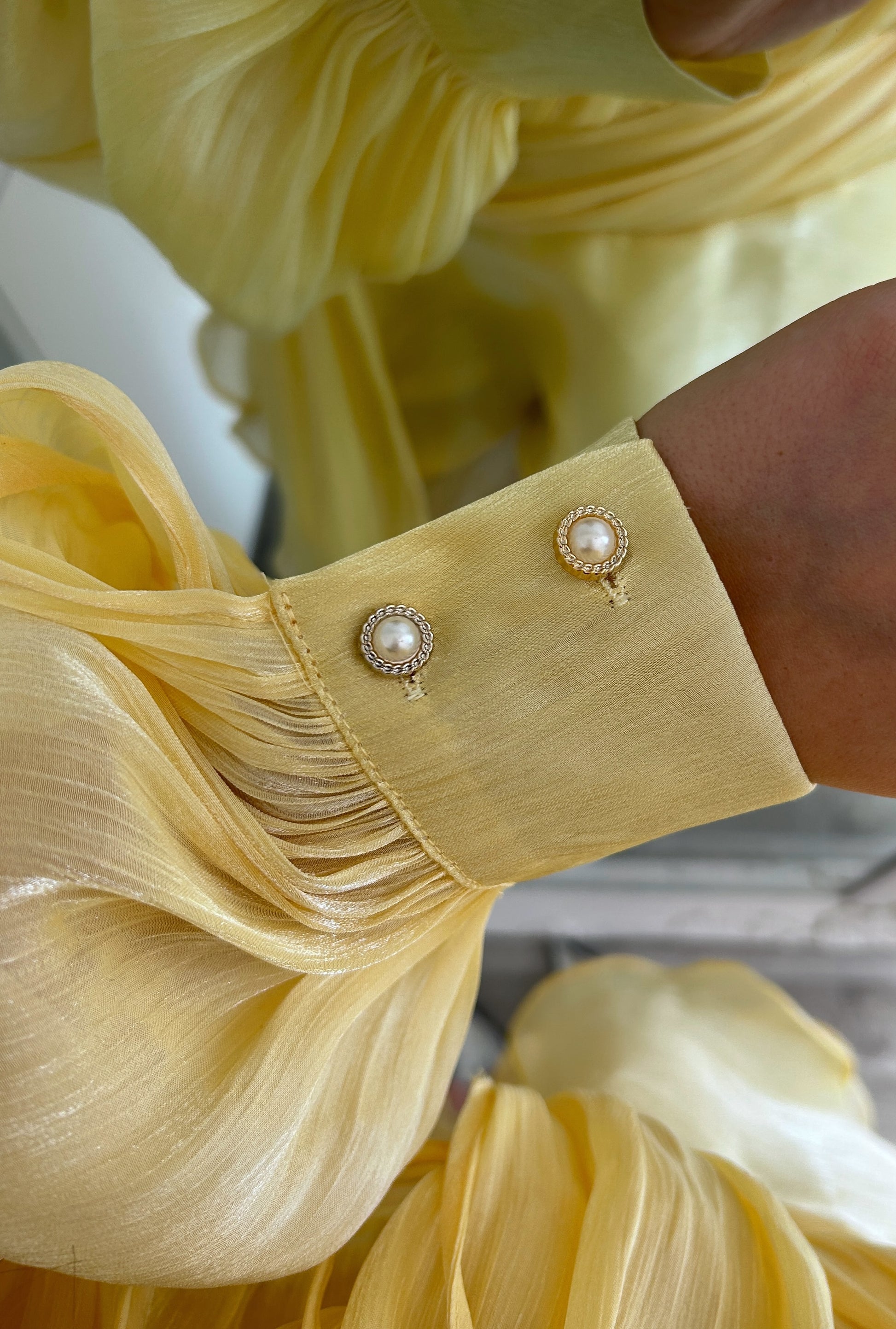 - Pearl button cuff details